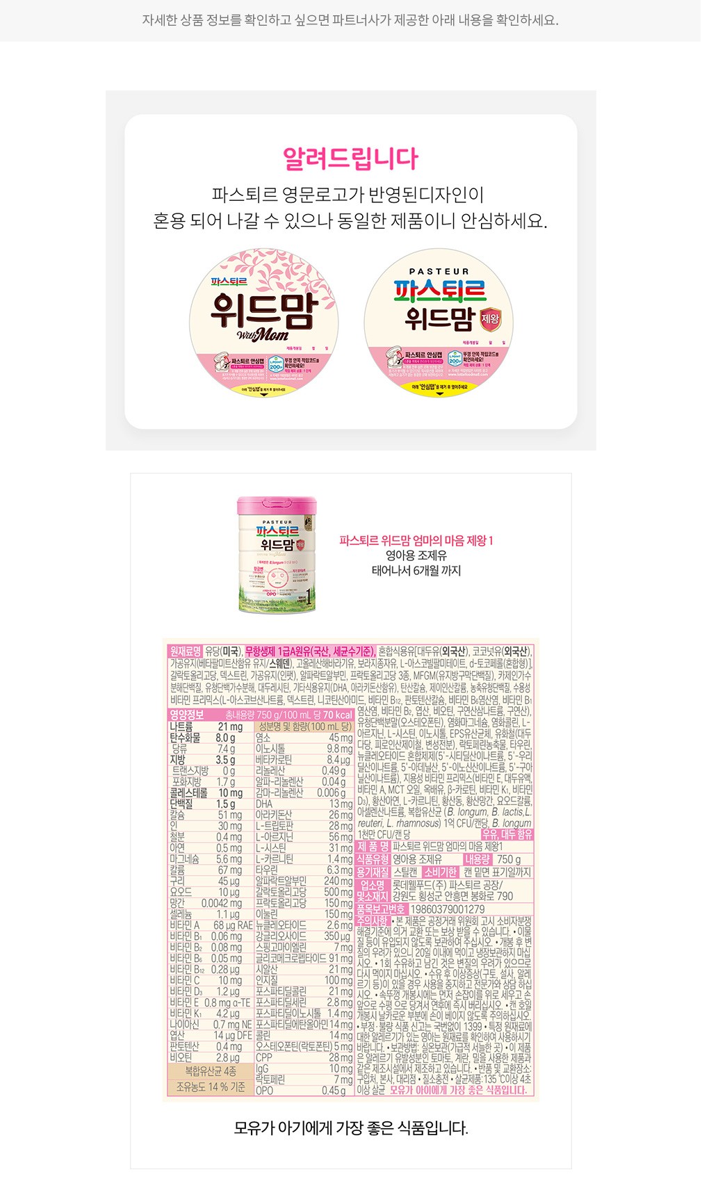 [파스퇴르] 위드맘 제왕 분유 1단계 750g (0일~6개월)