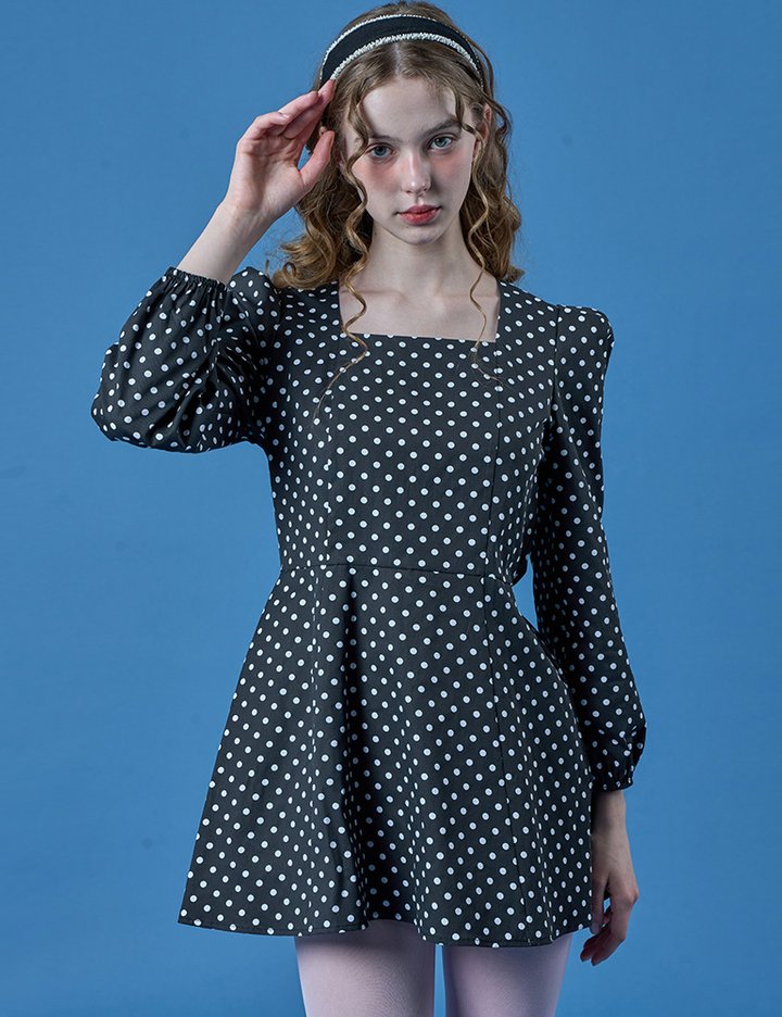 [콜릿] 벌룬 퍼프 도트 스퀘어넥 미니원피스 (BLACK)