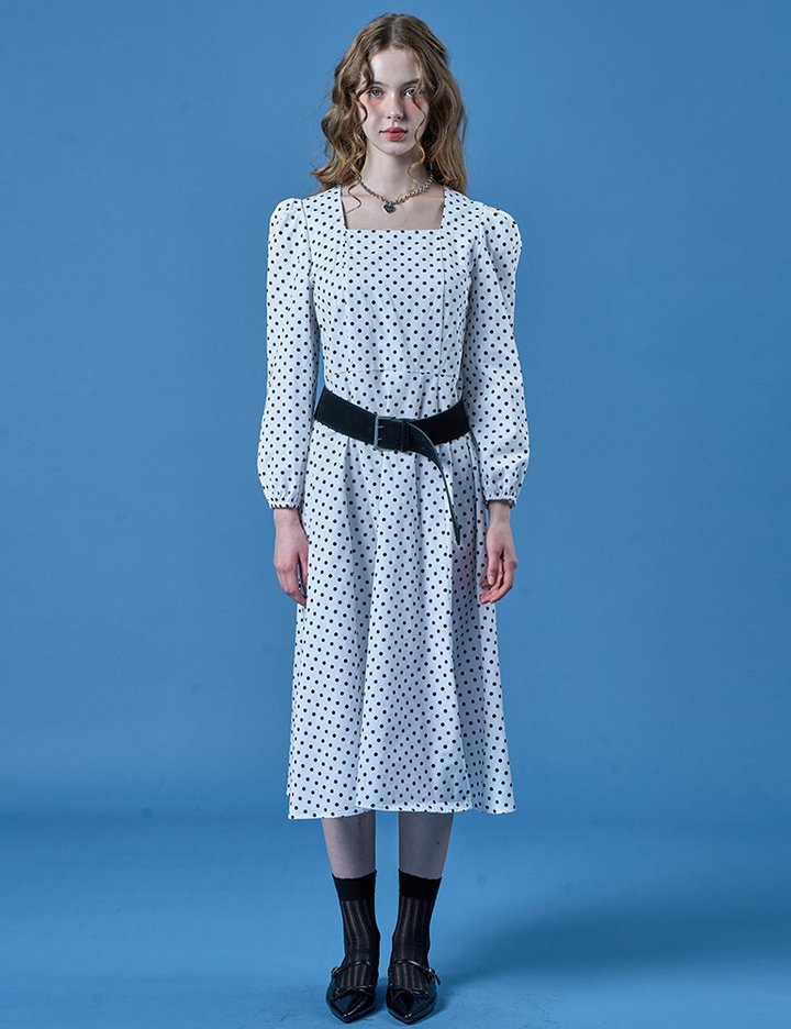 [콜릿] 벌룬 퍼프 도트 스퀘어넥 맥시 롱원피스 (WHITE)