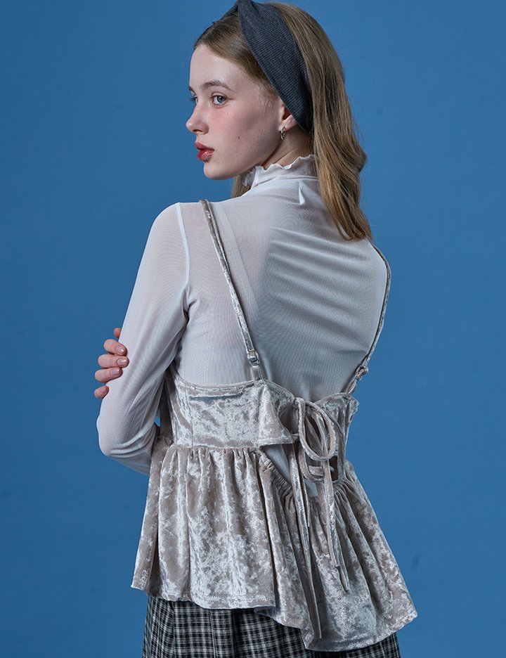 [콜릿] 레이어드 벨벳 끈나시 베스트 (CREAM) KCL.