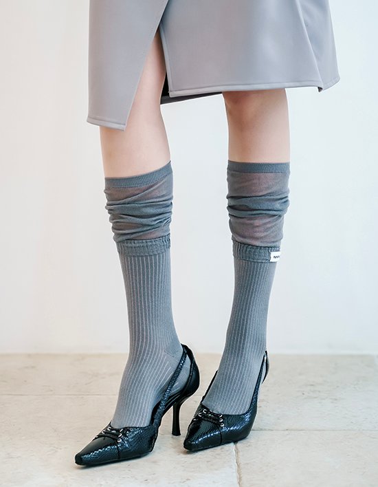 (선물포장)레이어드 스타일로 포인트 니삭스