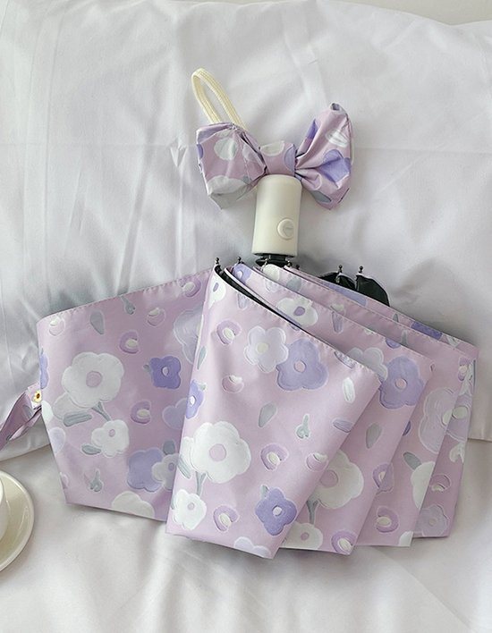 [포유렐라] 퍼플벚꽃 UV차단 3단 암막 접이식 휴대용 자동우산