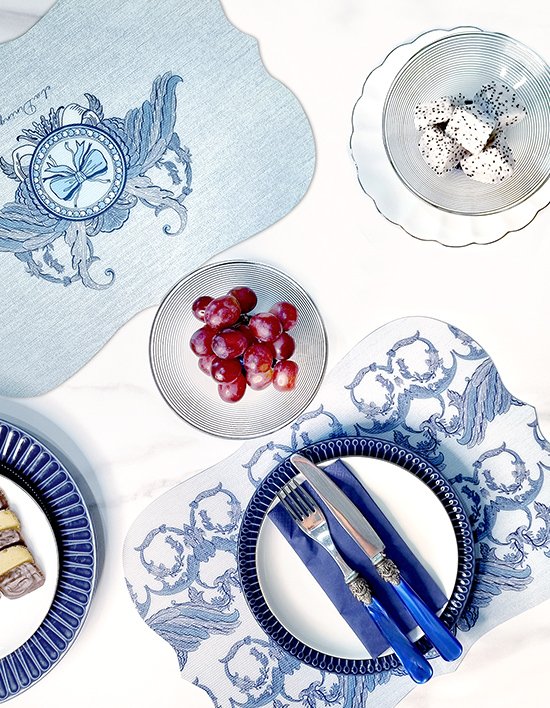 [엘라다이닝]국내 제작 TPU 엠보 식탁매트 블루 플로렌스 2종 (택1)