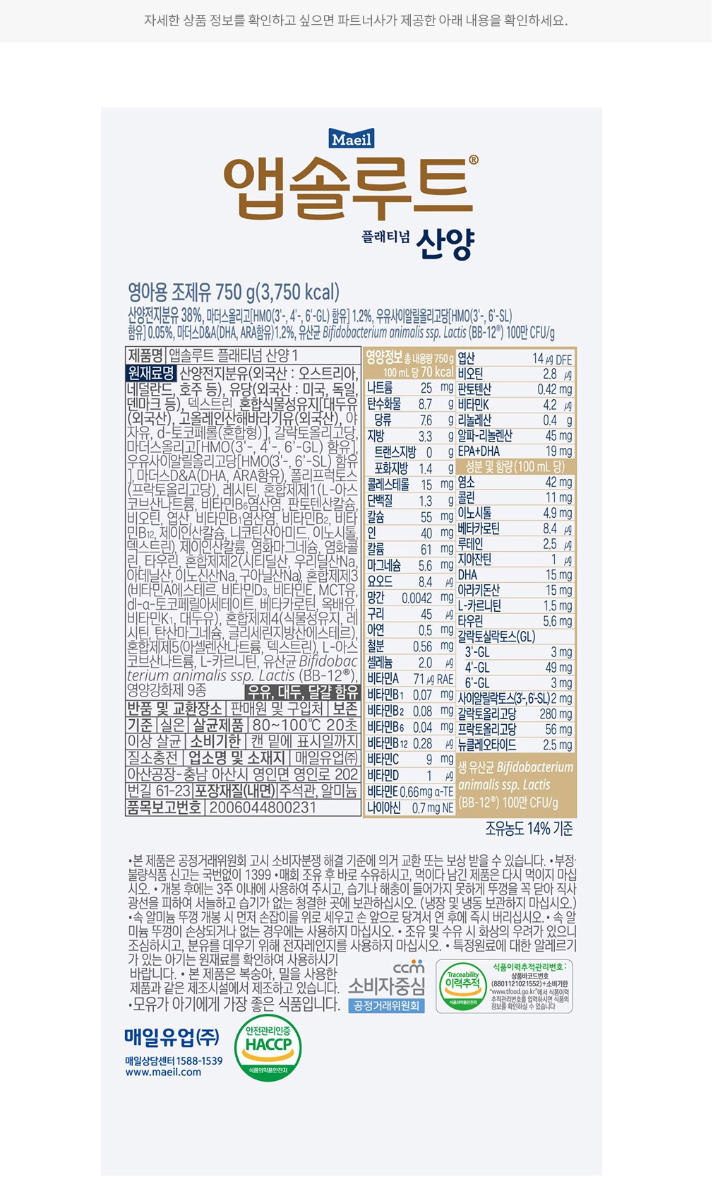 [앱솔루트] 플래티넘 산양 분유 1단계 750g (0일~6개월)
