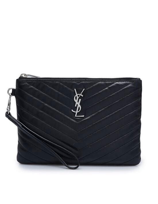 [생로랑] 블랙 마틀라세 모노그램 은장 스몰 클러치