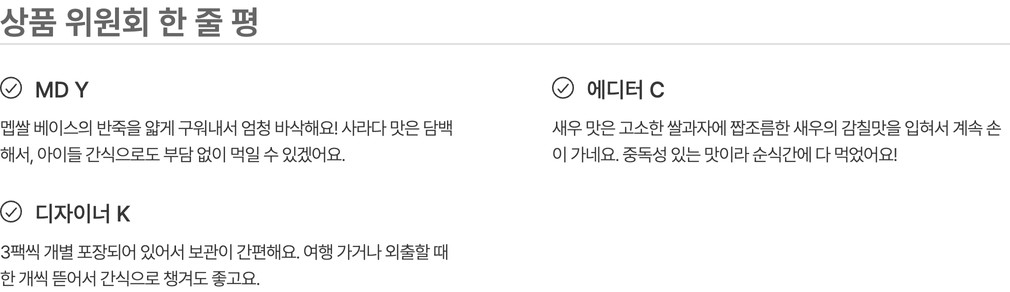 나와 내 가족이 먹고 쓸 상품을 고르는 마음으로 매주 상품을 직접 먹어보고, 경험해보고 성분, 맛, 안정성 등 다각도의 기준을 통과한 상품만을 판매합니다.(온라인 기준 / 자사몰, 직구 제외)