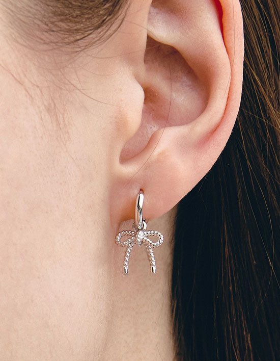 [바이이에르] 리본 실버(W) 트위스트 원터치 귀걸이 (WHITE)