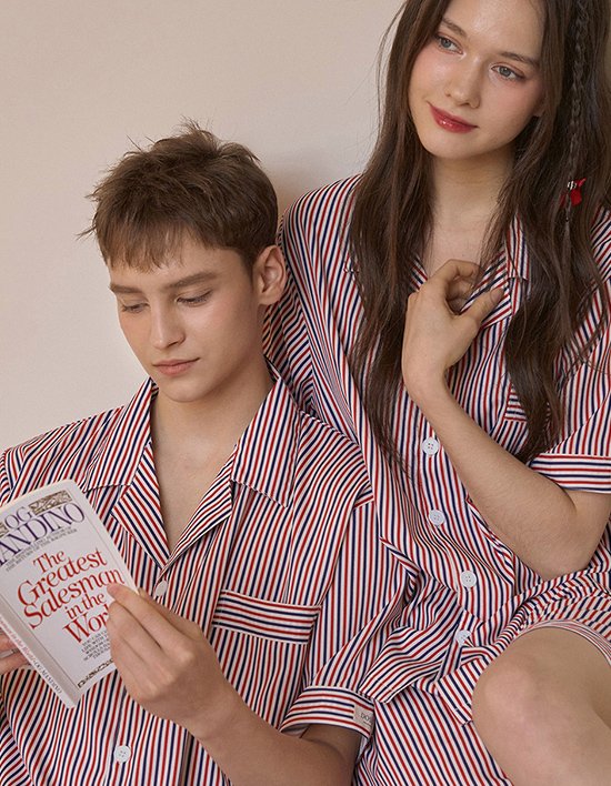[도씨] 2PACK/실크핏 프렌치 반팔 커플 잠옷 세트