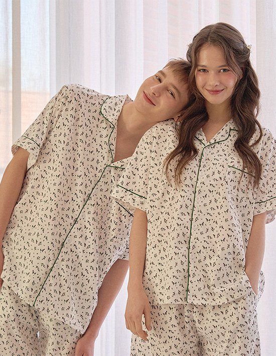 [도씨] 2PACK/실크핏 쉐리 반팔 커플 잠옷 세트