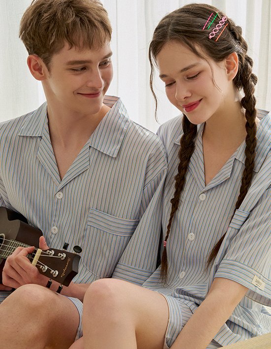 [도씨] 실크핏 브리즈 반팔 커플 잠옷 세트