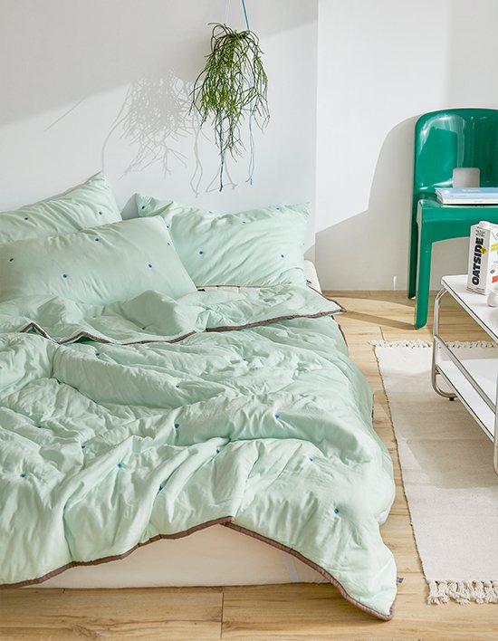 귀여운 자수 퀄팅으로 디자인적은 디테일, 피치가공으로 부드러운 촉감&포근한 침구