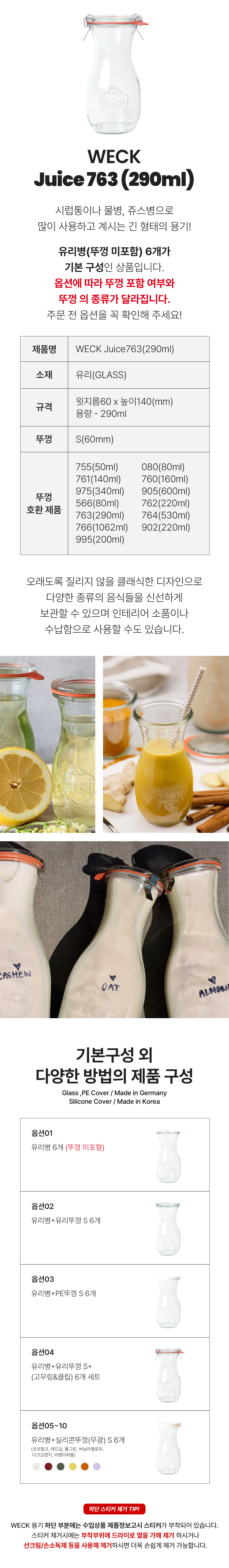 [WECK] 쥬스병 763(290ml) 6개 세트