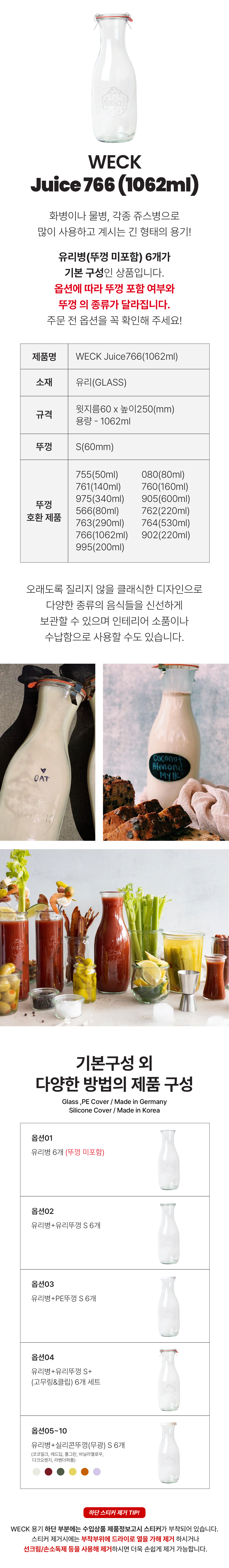 [WECK] 쥬스병 766(1062ml) 6개 세트
