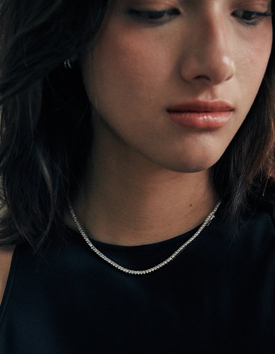 [베흐트] 앙쎄 테니스 화이트스톤 목걸이 (실버) (단품)