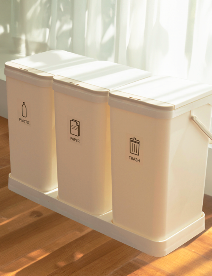• 모노플랫 3단 가정용 분리수거함 재활용 쓰레기통