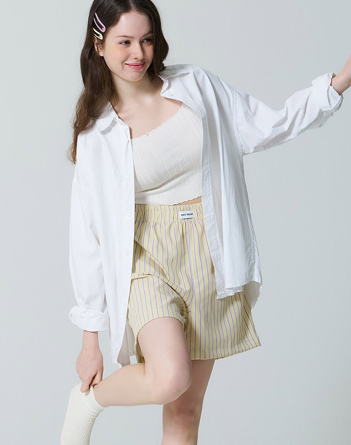 원마일(1.6km) 반경 내 입고 나갈 수 있는 실내복, 남녀 모두 편하게 입을 수 있는 FREE~XL 2가지 사이즈로 구성된 트렁크 팬츠