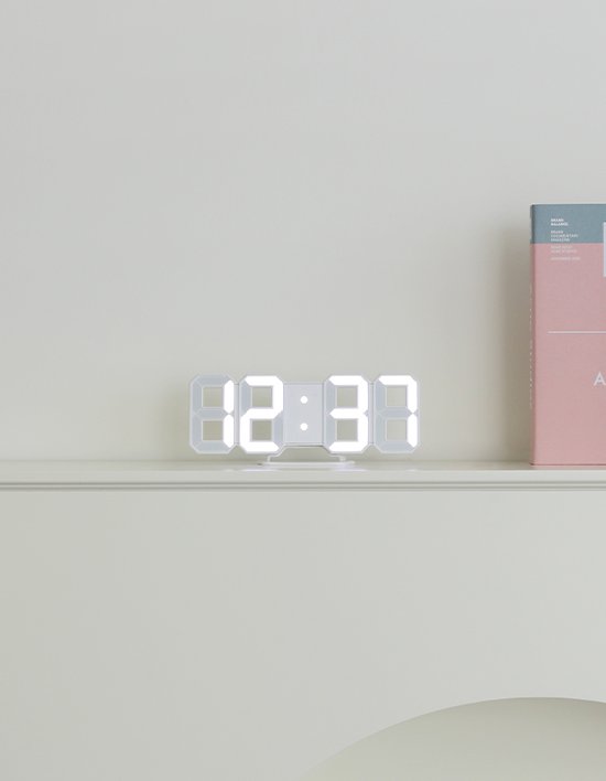무아스 화이트 미니 벽걸이 LED 벽시계 무소음 거실 디지털 전자 알람시계