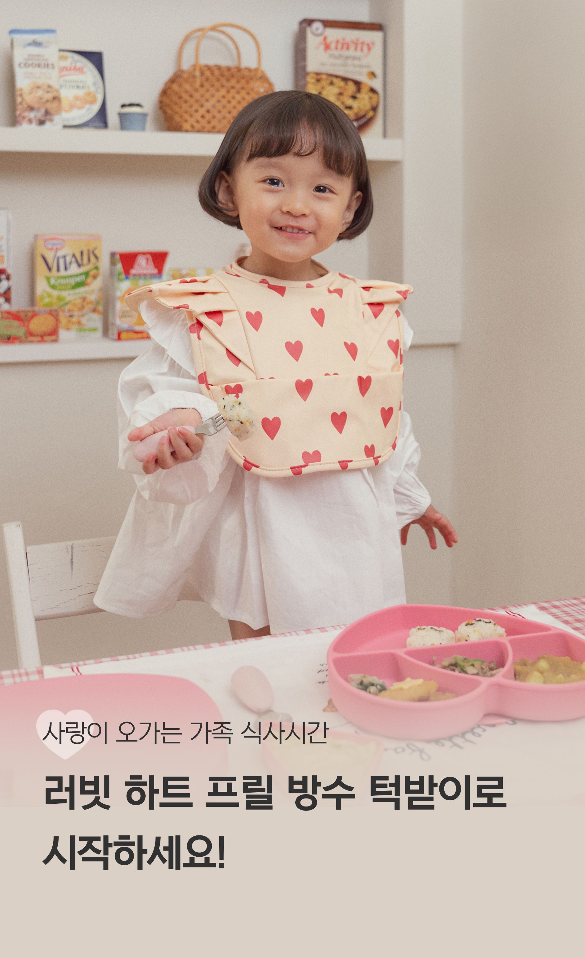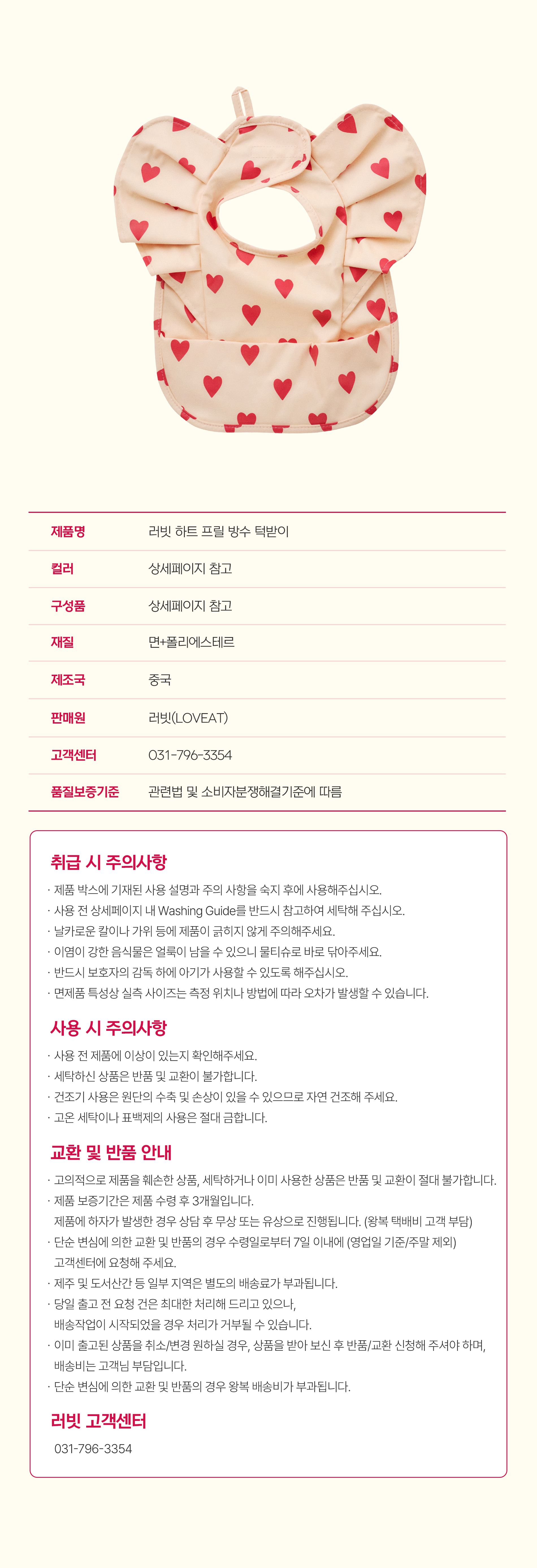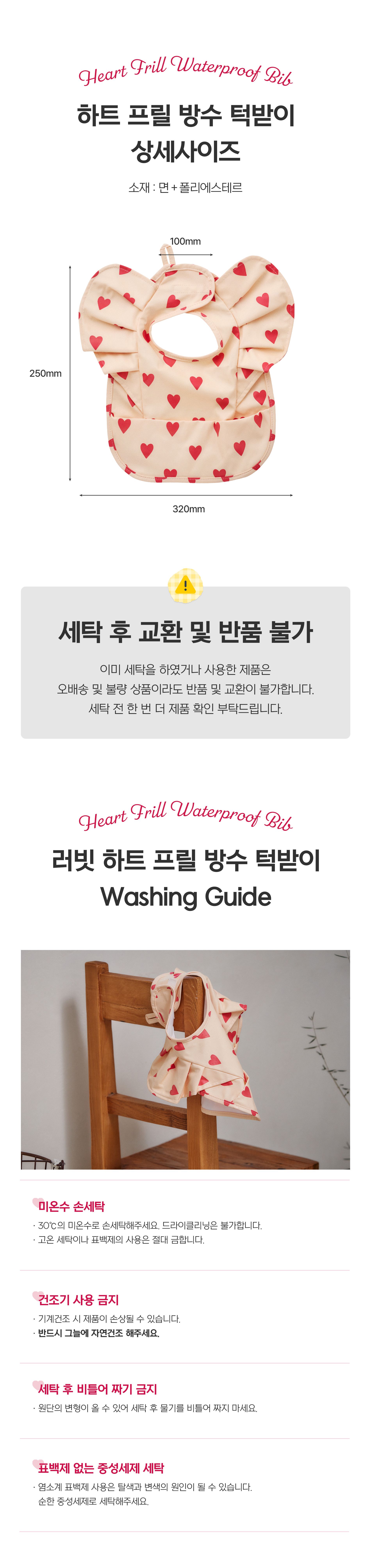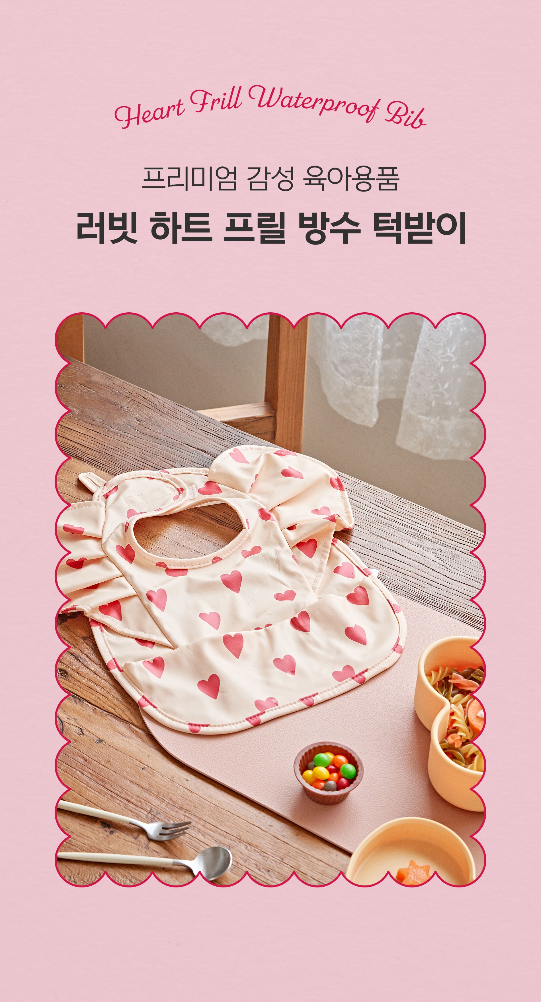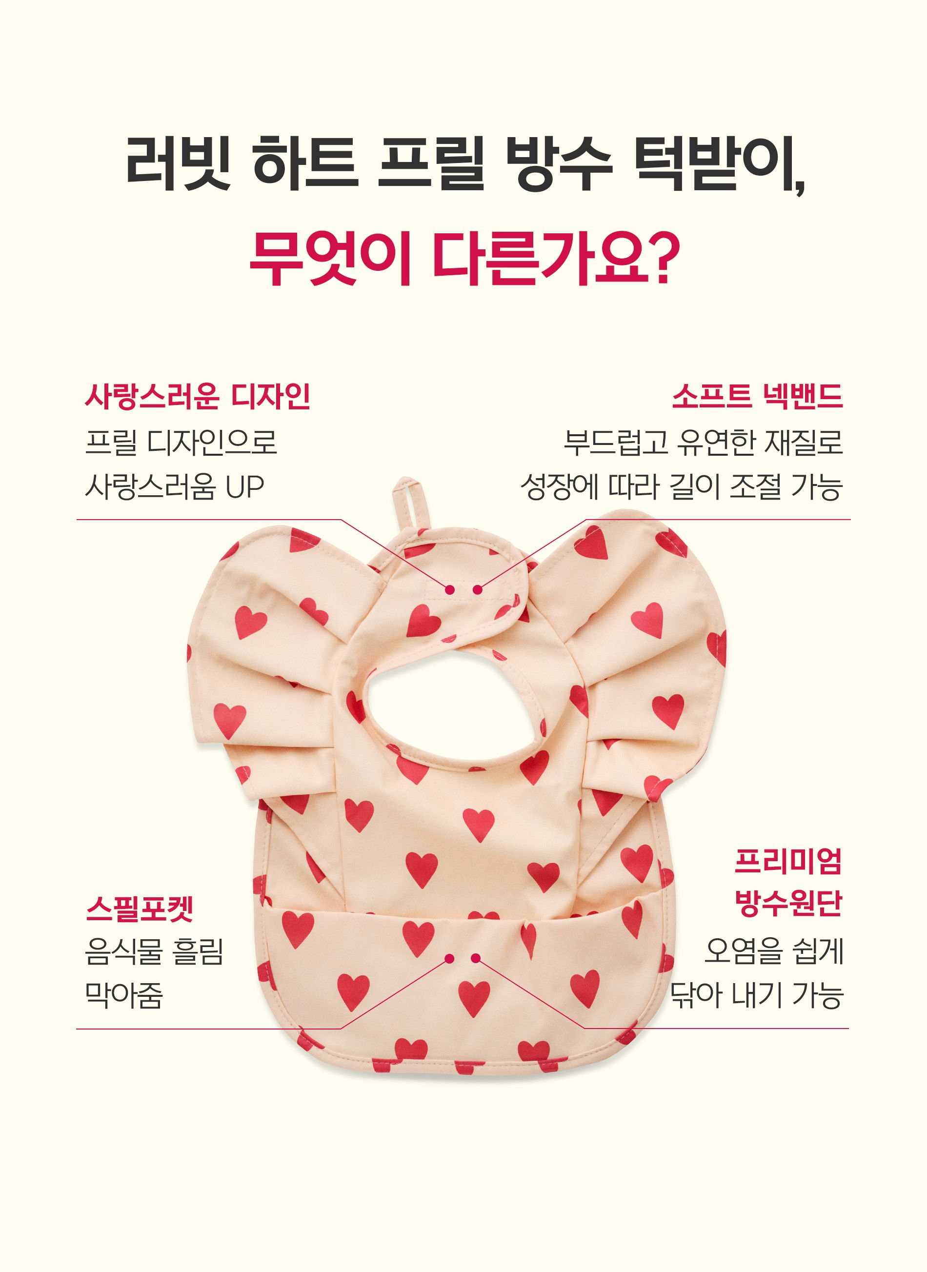 러빗 하트 프릴 방수 턱받이