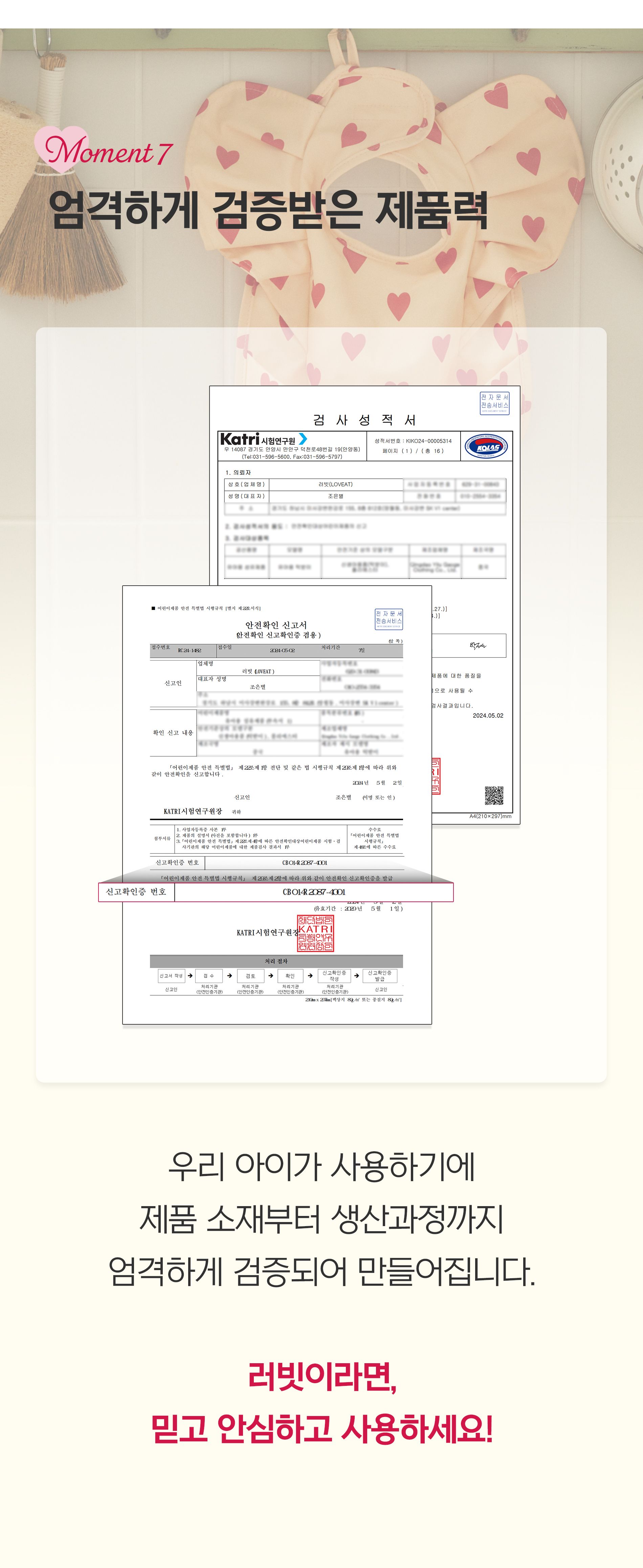 KC 인증정보 (「어린이제품 안전 특별법」에 따른 안전인증ㆍ안전확인ㆍ공급자적합성확인대상어린이제품에 한함)