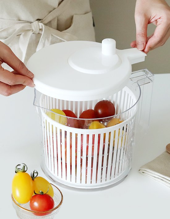 360도 회전 손잡이/ 계량눈금으로 활용도 좋은 컴팩트한 야채 탈수기!