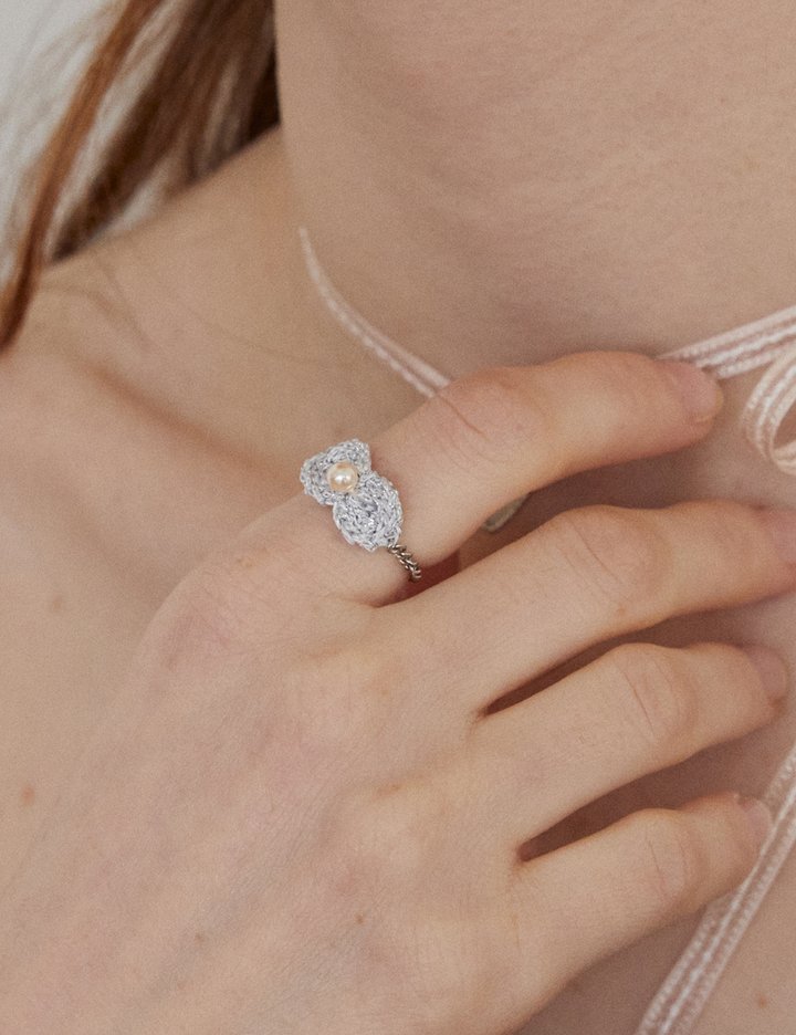 [메리모티브] 진주 니트 리본 체인 반지 (실버) (단품)