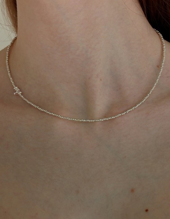 [레스이즈모어] 실버 비즈 목걸이 (one size)