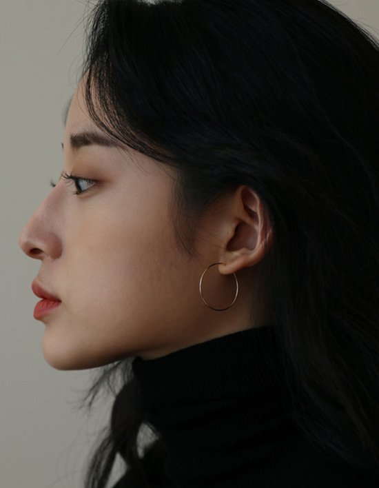 [레스이즈모어] 14K 골드 27mm 파이프 링 귀걸이