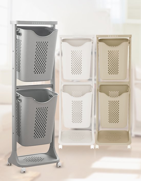 [네이쳐리빙] 더블점보 트롤리 스윙 2단 빨래바구니 4종 (택1)