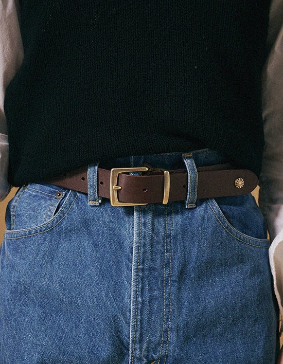이탈리아 통가죽 소재로 콘초 장식이 매력적인 빈티지한 무드의 가죽 벨트