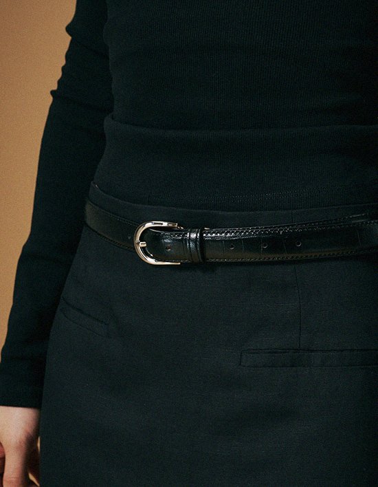 은은한 광택이 있는 소가죽 소재에 크로커 패턴을 프레스한 클래식 벨트