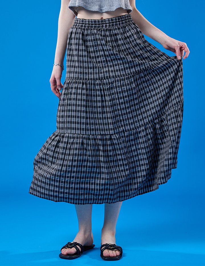 [콜릿] 릴리 에어리 쿨링 마몽 체크 롱스커트 (BLACK) KCL.
