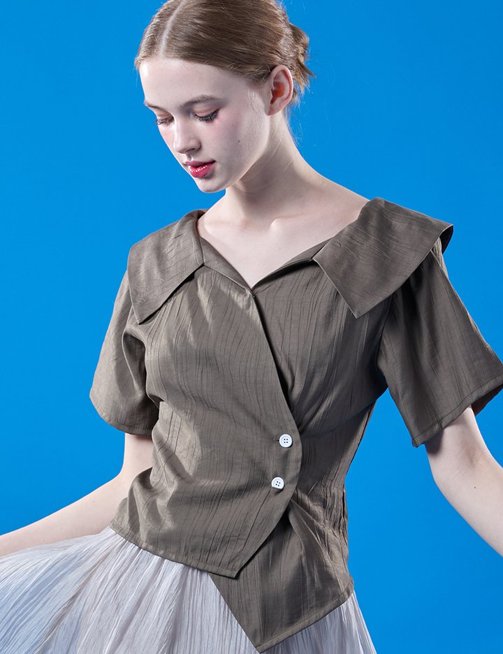 [콜릿] 에어리 쿨링 미디 랩 오프숄더 슬림 반팔셔츠 (카키) 반팔티 ver.