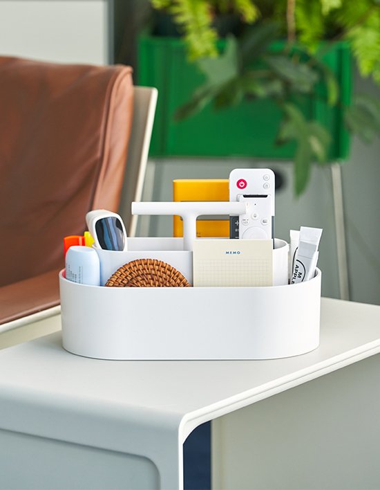 핸들이 있어 이동이 간편한 모던한 디자인과 컬러감의 넉넉한 멀티 수납함