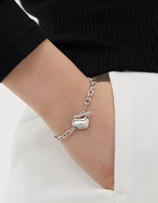 [이에르로르] 페블 하트 실버(W) T바 체인 팔찌 (WHITE)