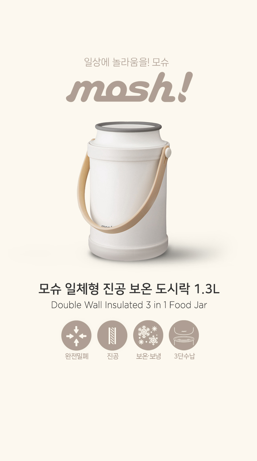 [모슈] 스테인리스 일체형 진공 보온 도시락 1.3L 4종(택1)