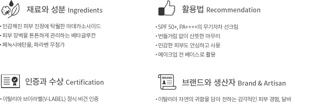 촉촉하게 발리는 순한 무기자차 선크림을 찾았다면 주목해주세요. 컬리는 민감한 피부도 안심하고 사용하는 달바의 워터풀 마일드 선크림을 준비했어요. SPF 50, PA++++의 든든한 자외선 차단력을 갖춘 제품인데요. 그 이름처럼 촉촉한 제형으로 무기자차 특유의 뻑뻑한 발림성을 개선했죠. 사용 후에도 가볍게 밀착되어 번들거림이나 밀림 현상 없이 편안할 거예요. 이탈리아 브이라벨에서 정식 비건 인증을 받은 점도 함께 확인해 보세요.