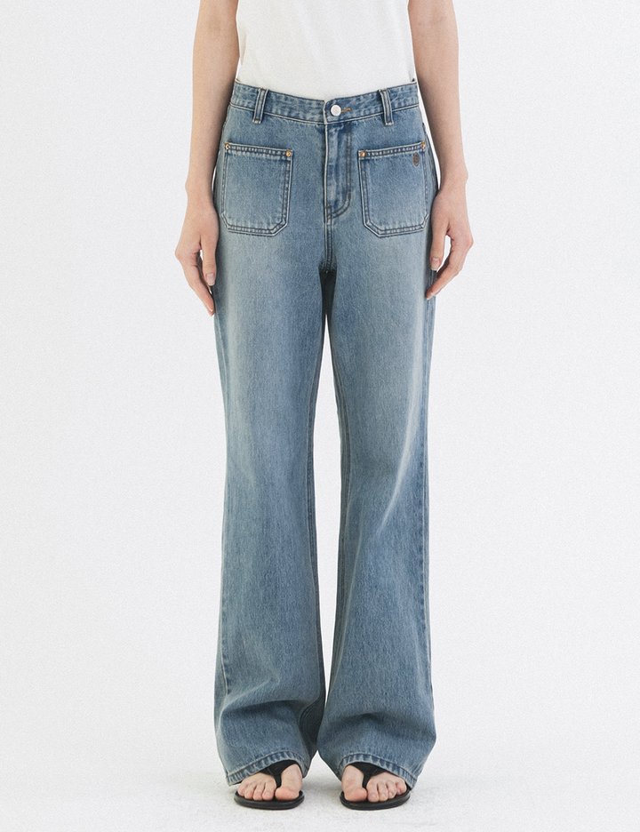 루즈하게 떨어지는 부츠컷 실루엣에 빈티지한 워싱이 매력적인 데님 팬츠입니다.