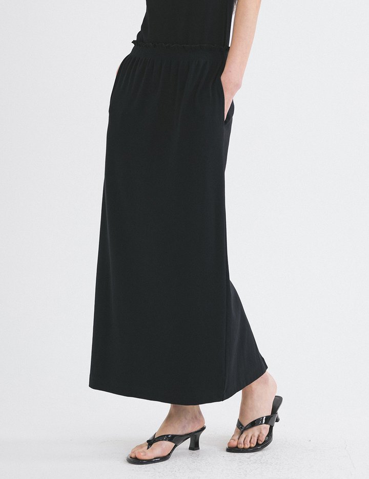 [시야쥬] 셔링 밴딩 골지 롱 스커트_블랙(SIST9048)