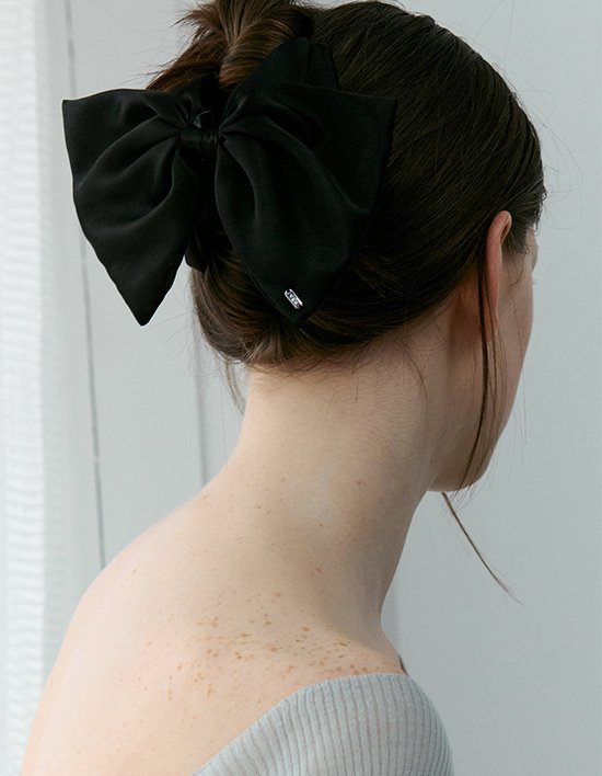 블랙 컬러 리본이 부드럽게 찰랑이며 머리에 리본을 맨 듯한 포인트를 주어 사랑스러운 무드를 연출해주는 헤어 아이템