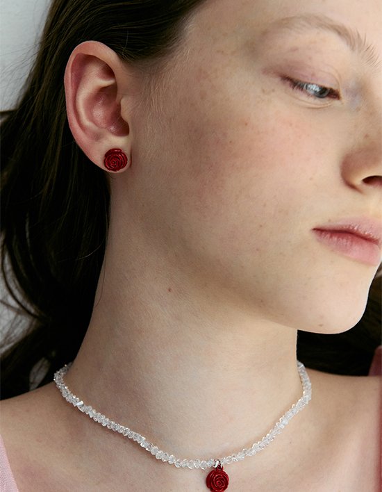 비비드한 컬러의 장미 꽃잎의 디테일을 살리면서도 빈티지헐리우드만의 느낌을 녹여 디자인된 귀걸이