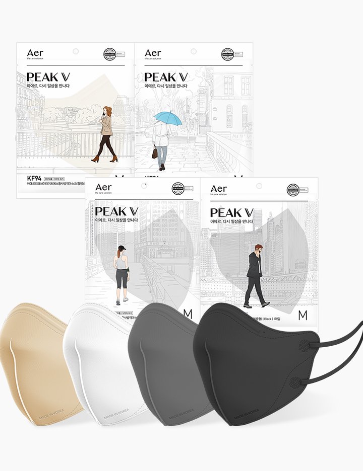 [아에르] KF94 피크 V 라이트핏 마스크 50개입 (S,M,L) 10종 (택1)
