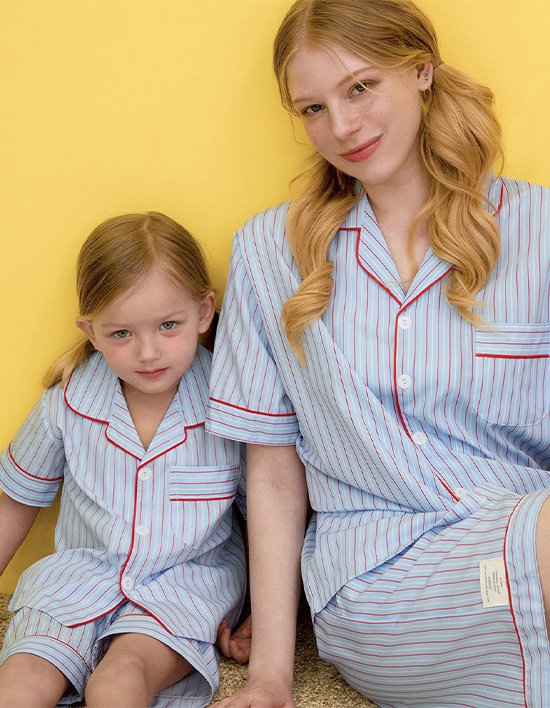[도씨] (성인1+아동1) 실크핏 클로에 반팔 패밀리 잠옷 세트