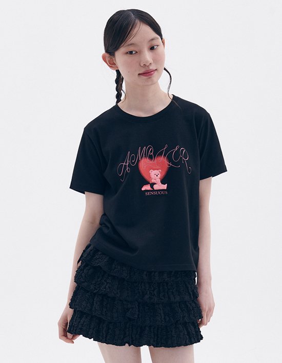 [엠블러] Sensuous Bear 그래픽 세미 크롭 반팔 티셔츠 ACR603 블랙