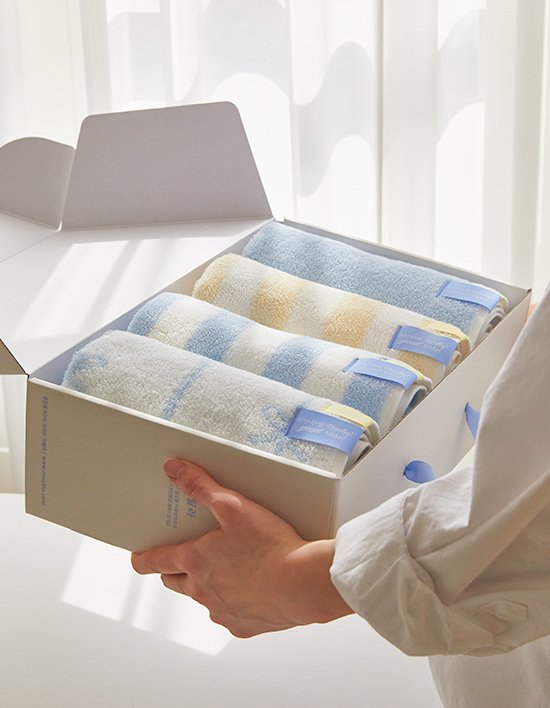 [마틸라] 선물포장 프리미엄 코마사 40수 항균 고중량 호텔타월 200g-디자인 4P 세트