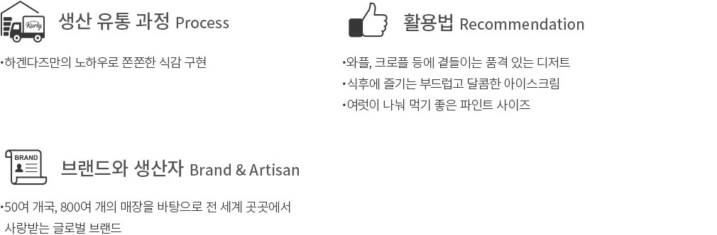 * 스트로베리, 바닐라, 그린티, 커피 - 우유, 계란 함유 * 초콜릿 - 우유, 계란 함유 - 대두 혼입 가능 * 쿠키앤크림 - 우유, 계란, 밀 함유 * 마카다미아 - 우유, 계란 함유 - 땅콩, 견과류 혼입 가능 * 다크 초콜릿 가나슈 & 아몬드 - 우유, 계란, 대두 함유 - 땅콩, 견과류 혼입가능 *로투스 비스킷 앤 크림 - 우유,계란,밀,대두 함유