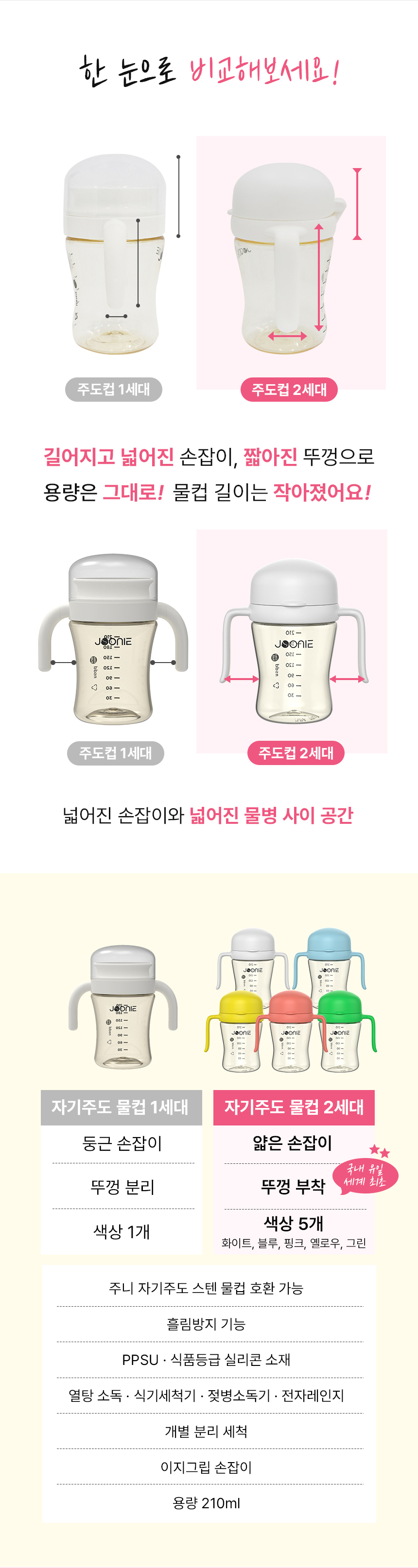 [주니] PPSU 빨대컵 2세대 뚜껑일체형 210ml 5종 (택1)