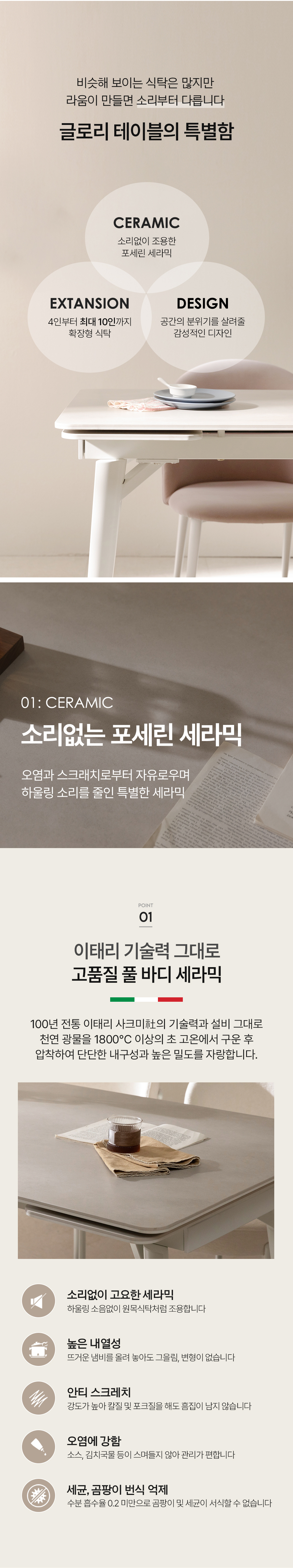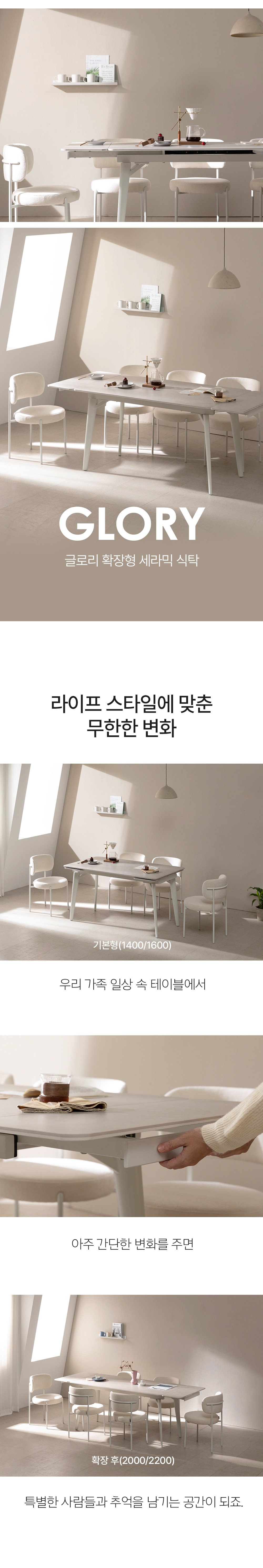 글로리 확장형 세라믹 식탁 테이블