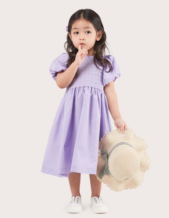 [세컨스킨] 키즈 스마킹밴딩 숄터퍼프 드레스 2종 (택1)
