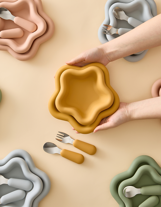 [스탠다드145] 트윙클 실리콘 유아식기 3종세트 (플레이트2종+스푼/포크) 4종 (택1)
