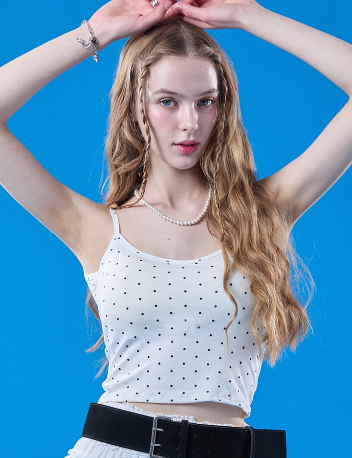[콜릿] 멜빈 내장브라탑 크롭 도트 탱크탑 나시 (WHITE) 이너 KCL.